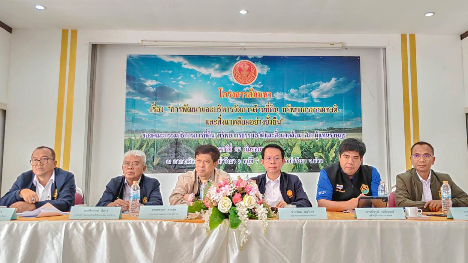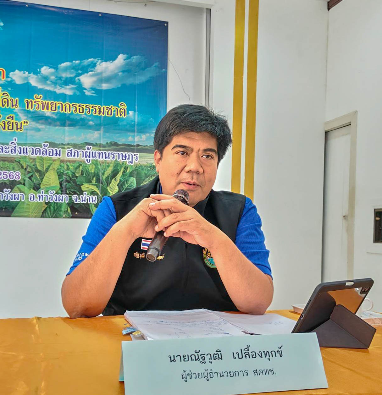 นายณัฐวุฒิ เปลื้องทุกข์ ผู้ช่วยผู้อำนวยการสำนักงานคณะกรรมการนโยบายที่ดินแห่งชาติ (ผอ.สคทช.) เข้าร่วมประชุมการแก้ไขปัญหาพื้นที่ทับซ้อนระหว่างที่ดินของรัฐกับที่อยู่อาศัยและที่ทำกินของประชาชน ตลอดจนเข้าร่วมสัมมนา เรื่อง “การพัฒนาและบริหารจัดการด้านที่ดินทรัพยากรธรรมชาติและสิ่งแวดล้อมอย่างยั่งยืน” ในระหว่างวันที่ 26 - 29 กันยายน 2568 ณ จังหวัดน่าน ซึ่งเป็นการเก็บประเด็นปัญหาของราษฎรที่อาศัยและทำกินในพื้นที่ป่าสงวนแห่งชาติ และสำนักงานทรัพยากรธรรมชาติและสิ่งแวดล้อมจังหวัดน่าน ได้ชี้แจงทำความเข้าใจ รวมถึงเร่งรัดการแก้ไขปัญหาในพื้นที่ที่มีความเดือดร้อน โดยมีนายนิคม บุญวิเศษ รองประธานคณะกรรมาธิการ คนที่ 2 เป็นประธานการประชุม พร้อมด้วย นายทรงยศ รามสูต รองประธานคณะกรรมาธิการ นายสิงหภณ ดีนาง กรรมาธิการและที่ปรึกษาคณะกรรมาธิการ ผู้แทนจากหน่วยงานที่เกี่ยวข้องกับการบริหารจัดการที่ดิน ราษฎรในพื้นที่อำเภอเมือง และอำเภอภูเพียง และเจ้าหน้าที่ สคทช. เข้าร่วมการประชุมและสัมมนาดังกล่าว