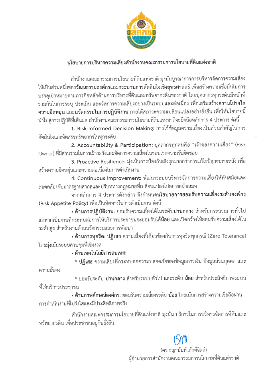 นโยบายการบริหารความเสี่ยง สำนักงานคณะกรรมการนโยบายที่ดินแห่งชาติ