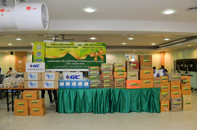 เมื่อวันเสาร์ที่ 3 กรกฎาคม 2564 ดร.รวีวรรณ ภูริเดช เลขาธิการสำนักงานนโยบายและแผนทรัพยากรธรรมชาติและสิ่งแวดล้อม รักษาราชการแทน ผู้อำนวยการสำนักงานคณะกรรมการนโยบายที่ดินแห่งชาติ ร่วมกับผู้แทนบริษัท พีทีที โกลบอล เคมิคอล จำกัด (มหาชน) มอบสิ่งของบริจาค ได้แก่ อาหารปรุงสุกใหม่ อาหารสำเร็จรูป ขนม นมกล่อง ผลไม้ น้ำดื่มและน้ำผลไม้ หน้ากากอนามัย เจลล้างมือ และเครื่องดื่มอเมซอน เป็นต้น เพื่อเป็นขวัญและกำลังใจให้กับบุคลากรทางการแพทย์ที่ปฏิบัติงานในช่วงการระบาดของโรคโควิด-19 ณ ศูนย์บริการฉีดวัคซีน อาคารจักรพันธ์เพ็ญศิริ มหาวิทยาลัยเกษตรศาสตร์ โดยมี ดร.ดำรงค์ ศรีพระราม รองอธิการบดีฝ่ายบริหาร ผู้แทนจากมหาวิทยาลัยเกษตรศาสตร์ รับมอบสิ่งของดังกล่าว