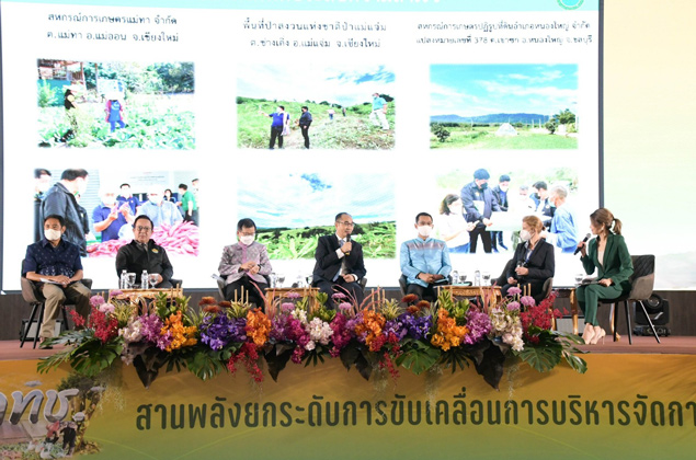รองนายกรัฐมนตรี กล่าวปาฐกถาพิเศษว่า สำนักงานคณะกรรมการนโยบายที่ดินแห่งชาติ เป็นองค์กรที่มีภารกิจสำคัญด้านการบริหารจัดการที่ดินและทรัพยากรดินของประเทศ ที่จะบูรณาการทุกภาคส่วน ทั้งการมีส่วนร่วมของประชาชนและชุมชน ซึ่งจะทำให้การบริหารจัดการที่ดินและทรัพยากรดินของประเทศที่มีอยู่อย่างจำกัด มีประสิทธิภาพ เกิดประโยชน์สูงสุด สมดุล เป็นธรรม และยั่งยืน และที่สำคัญคือแก้ไขปัญหาความเดือดร้อนและลดความเหลื่อมล้ำในสังคมให้กับประชาชน เพื่อให้พี่น้องประชาชนได้มีสิทธิทำกินและอยู่อาศัยในที่ดินของรัฐอย่างถูกต้องตามกฎหมาย ให้ความมั่นใจในการประกอบอาชีพ สร้างความมั่นคงในการดำรงชีวิต ภายใต้การดำเนินการของ คทช. ซึ่งประสบความสำเร็จและก้าวหน้ามาเป็นลำดับ โดยตั้งแต่ปี 2558 จนถึงปัจจุบัน ได้กำหนดพื้นที่เป้าหมายไปแล้ว 1,491 พื้นที่ เนื้อที่รวม 5.7 ล้านไร่ ครอบคลุม 70 จังหวัด และสามารถจัดคนเข้าใช้ประโยชน์ให้ได้มีที่อยู่อาศัยและที่ทำกินได้แล้ว 78,109 ราย