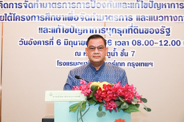 เมื่อวันอังคารที่ 6 มิถุนายน 2566 เวลา 09.00 น. นายสุริยน พัชรครุกานนท์ รองผู้อำนวยการสำนักงานคณะกรรมการนโยบายที่ดินแห่งชาติ เป็นประธานการประชุมสัมมนารับฟังความคิดเห็นและข้อเสนอแนะต่อกรอบแนวคิดการจัดทำมาตรการและแนวทางการป้องกันและแก้ไขปัญหาการบุกรุกที่ดินของรัฐ ภายใต้โครงการศึกษาเพื่อจัดทำมาตรการและแนวทางการป้องกันและแก้ไขปัญหาการบุกรุกที่ดินของรัฐ โดยได้รับเกียรติจาก ผู้ช่วยศาสตราจารย์ ขวัญชัย ดวงสถาพร ผู้ทรงคุณวุฒิในคณะอนุกรรมการปรับปรุงแผนที่แนวเขตที่ดินของรัฐแบบบูรณาการ มาตราส่วน 1 : 4000 (One Map) และแก้ไขปัญหาแนวเขตที่ดินของรัฐ ผู้ช่วยศาสตราจารย์ อิทธิพล ศรีเสาวลักษณ์ ผู้ทรงคุณวุฒิในคณะอนุกรรมการนโยบาย แนวทาง และมาตรการการบริหารจัดการที่ดินและทรัพยากรดิน และนางสาวศยามล ไกยูรวงศ์ กรรมการสิทธิมนุษยชนแห่งชาติ ร่วมเสวนาในหัวข้อ "แนวทางมาตรการการป้องกันและแก้ไขปัญหาการบุกรุกที่ดินของรัฐของประเทศไทย อดีต ปัจจุบัน และอนาคต" และมีผู้แทนหน่วยงานที่เกี่ยวข้องทั้งจากส่วนกลาง ส่วนภูมิภาค และเจ้าหน้าที่ สคทช. จำนวนทั้งสิ้น 300 คน เข้าร่วมประชุม ณ ห้องประตูน้ำ โรงแรมอมารี วอเตอร์เกท กรุงเทพฯ และผ่านระบบ Video Conference