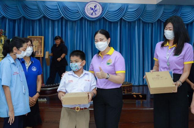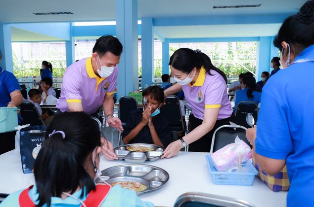 เมื่อวันพุธที่ 21 มิถุนายน 2566 เวลา 11.00 น. ณ โรงเรียนปัญญาวุฒิกร แขวงลาดยาว เขตจตุจักร กรุงเทพฯ ดร.รวีวรรณ ภูริเดช ผู้อำนวยการ สคทช. นำคณะผู้บริหาร และเจ้าหน้าที่ สคทช. จัดกิจกรรมเลี้ยงอาหารกลางวันแก่นักเรียนโรงเรียนปัญญาวุฒิกร เพื่อถวายเป็นพระราชกุศล เนื่องในโอกาสเฉลิมพระชนมพรรษาสมเด็จพระนางเจ้า ฯ พระบรมราชินี วันที่ 3 มิถุนายน 2566 โดยได้มอบเงินทุนค่าอาหารกลางวันแก่โรงเรียนปัญญาวุฒิกร จำนวน 12,000 บาท พร้อมทั้งสิ่งของอุปโภค-บริโภค อาทิ หน้ากากอนามัย แอลกอฮอล์ น้ำยาฆ่าเชื้อ เครื่องปรุงรสสำหรับทำอาหาร กระดาษชำระ กระดาษเช็ดเอนกประสงค์ เป็นต้น ให้แก่ ดร.สมบูรณ์ อาศิรพจน์ ผู้อำนวยการโรงเรียนปัญญาวุฒิกร เพื่อนำไปใช้ประโยชน์ต่อไป