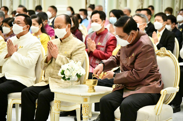โอกาสนี้ นายกรัฐมนตรีจุดธูปเทียนบูชาพระรัตนตรัยและถวายตาลปัตรแด่พระสงฆ์ จำนวน 10 รูป เจ้าหน้าที่อาราธนาศีล พระสงฆ์ให้ศีล นายกรัฐมนตรีจุดเทียนน้ำมนต์ พระสงฆ์เจริญพระพุทธมนต์ จากนั้น นายกรัฐมนตรี รัฐมนตรี และตัวแทนผู้บริหารในสังกัดสำนักนายกรัฐมนตรี ถวายเครื่องไทยธรรมและปิ่นโต นายกรัฐมนตรีถวายผ้าไตร จำนวน 10 ไตร พระสงฆ์สวดอนุโมทนา นายกรัฐมนตรีกรวดน้ำ ต่อจากนั้น สมเด็จพระพุฒาจารย์ เข้าอาวาสวัดไตรมิตรวิทยารามวรวิหาร ประธานสงฆ์ ประพรมน้ำพระพุทธมนต์แก่ผู้เข้าร่วมพิธีเพื่อเสริมความเป็นสิริมงคลเป็นอันเสร็จพิธี