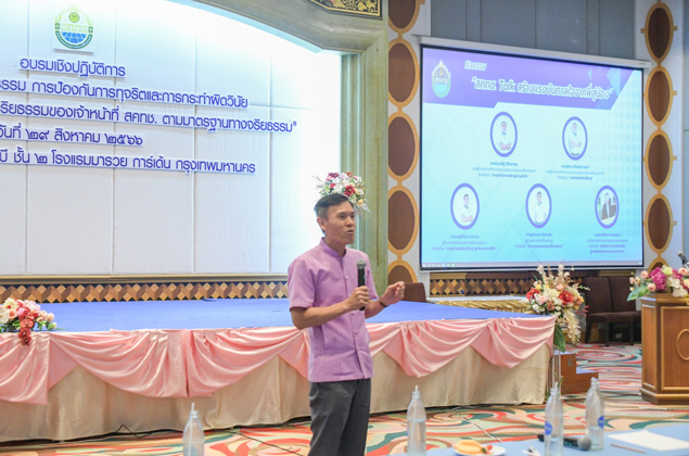 เมื่อวันอังคารที่ 29 สิงหาคม 2566 เวลา 09.00 น. ณ ห้องประชุม Ballroom AB โรงแรมมารวยการ์เด้น นายประเสริฐ ศิรินภาพร รองผู้อำนวยการ สคทช. เป็นประธานเปิดโครงการส่งเสริมจริยธรรม การป้องกันการทุจริตและการกระทำผิดวินัย หลักสูตร "เสริมสร้างคุณธรรม จริยธรรมของเจ้าหน้าที่ สคทช. ตามมาตรฐานทางจริยธรรม"