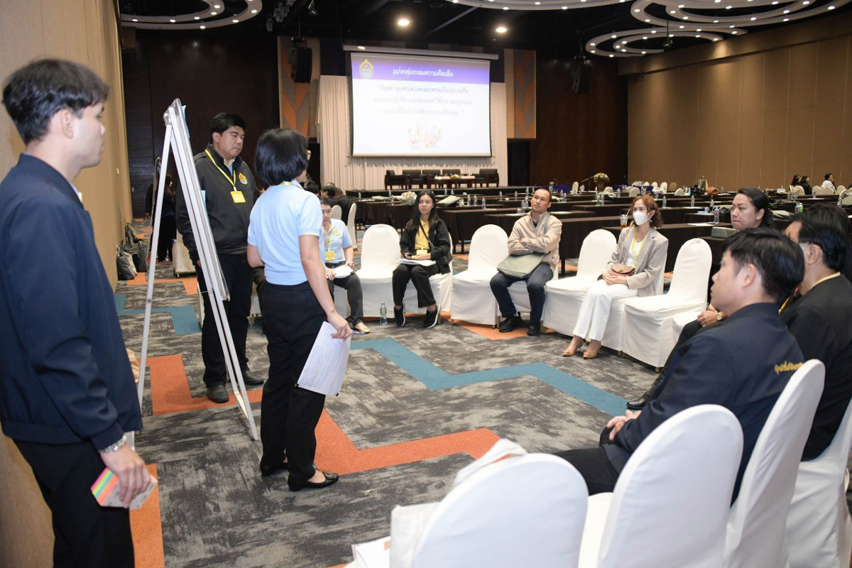 เมื่อวันพฤหัสบดีที่ 8 สิงหาคม 2567 ดร.รวีวรรณ ภูริเดช ผู้อำนวยการสำนักงานคณะกรรมการนโยบายที่ดินแห่งชาติ มอบหมายให้ นายณัฐวุฒิ เปลื้องทุกข์ ผู้ช่วย ผอ.สคทช. เป็นประธานเปิดการประชุมสัมมนาเชิงปฏิบัติการเพื่อหารือแนวทางปฏิบัติตามหลักเกณฑ์ วิธีการและรูปแบบการจัดที่ดินทำกินให้ชุมชนภายใต้คณะกรรมการนโยบายที่ดินแห่งชาติ (คทช.) โดยมีบุคลากรของ สคทช. และหน่วยงานที่เกี่ยวข้องกับการจัดที่ดินทำกินให้ชุมชน ภายใต้คณะกรรมการนโยบายที่ดินแห่งชาติ (คทช.) ได้แก่ กรมป่าไม้ กรมที่ดิน กรมส่งเสริมสหกรณ์ กรมทรัพยากรทางทะเลและชายฝั่ง สำนักงานการปฏิรูปที่ดินเพื่อเกษตรกรรม (ส.ป.ก) กรมธนารักษ์ กรมพัฒนาสังคมและสวัสดิการ และ คทช. จังหวัดชลบุรี จำนวนทั้งสิ้น 90 คน เข้าร่วมสัมมนา ระหว่างวันที่ 8 - 9 สิงหาคม 2567 ณ ห้องประชุมแสนสุข 3 โรงแรมบางแสน เฮอริเทจ จังหวัดชลบุรี