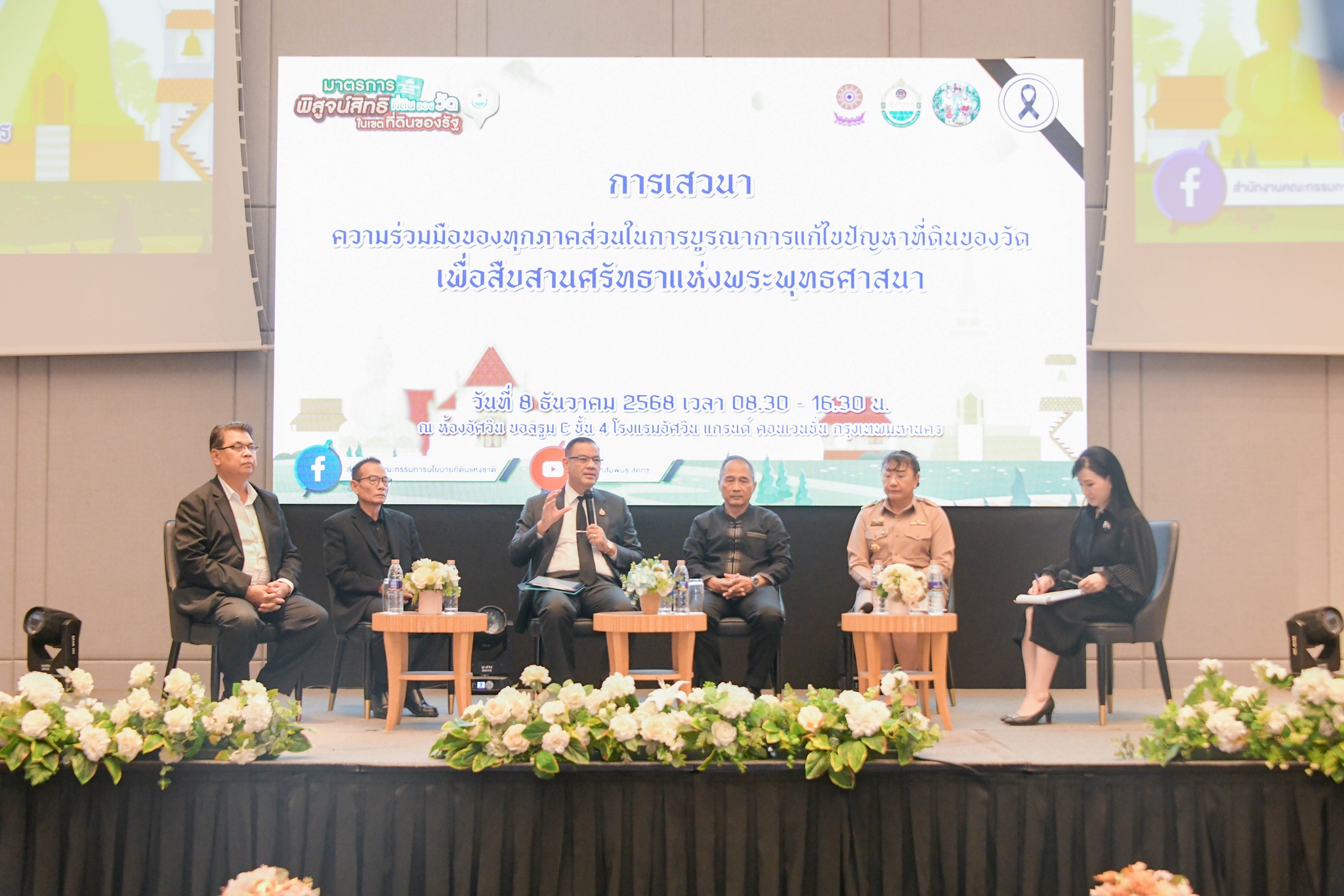 ทั้งนี้ภายในงาน ยังจัดให้มีการบรรยายและปาฐกถาพิเศษจากวิทยากรผู้ทรงคุณวุฒิด้านต่างๆ เพื่อสร้างความรู้ความเข้าใจที่ถูกต้อง รวมถึงปิดท้ายด้วยเวทีเสวนา ในหัวข้อ “ความร่วมมือของทุกภาคส่วนในการบูรณาการแก้ไขปัญหาที่ดินของวัด เพื่อสืบสานพระพุทธศาสนา” เพื่อนำเสนอการแก้ไขปัญหาเกี่ยวกับการพิสูจน์สิทธิการครอบครองและทำประโยชน์ที่ดินของวัดในเขตที่ดินของรัฐที่มีมาก่อนการเป็นที่ดินของรัฐอย่างเป็นรูปธรรม รวมถึงไม่เป็นการสร้างภาระเกินสมควรแก่วัดที่จะพิสูจน์สิทธิในที่ดินของวัด และโฉนดที่จะออกให้กับวัดจะเป็นโฉนดเพื่อธรณีสงฆ์ ซึ่งวัดไม่สามารถเปลี่ยนมือหรือดำเนินการด้านนิติกรรมได้อย่างปกติ ซึ่งจะเป็นประโยชน์สูงสุดต่อวัดต่อไป