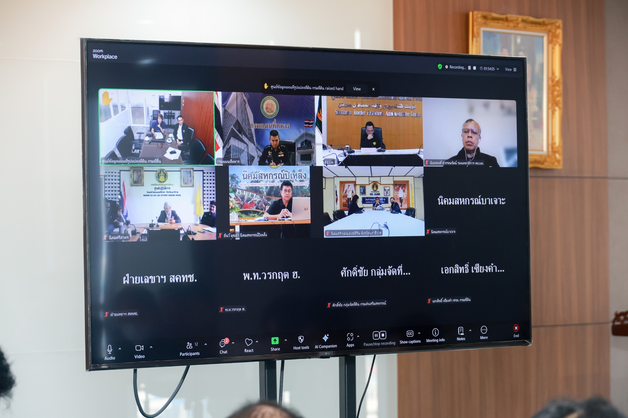 เมื่อวันพุธที่ 17 ธันวาคม 2568 ดร.ชญานันท์ ภักดีจิตต์ ผู้อำนวยการสำนักงานคณะกรรมการนโยบายที่ดินแห่งชาติ (ผอ.สคทช.) มอบหมายนายมูฮัมหมาด ยังหะสัน ผู้อำนวยการกองที่ดินของรัฐ จัดการประชุมแก้ไขปัญหาแนวเขตที่ดินในพื้นที่จังหวัดชายแดนภาคใต้ ครั้งที่ 1/2568 โดยมีพันเอก อรรถวุฒิ เกียรติวัฒน์ นายทหารฝ่ายเทคนิค กรมแผนที่ทหาร เป็นประธานการประชุม ร่วมกับหน่วยงานที่เกี่ยวข้องประกอบด้วย ผู้แทนกรมแผนที่ทหาร ศูนย์อำนวยการบริหารจังหวัดชายแดนภาคใต้ กรมพัฒนาสังคมและสวัสดิการ กรมส่งเสริมสหกรณ์ กรมพัฒนาที่ดิน กรมป่าไม้ กรมอุทยานแห่งชาติสัตว์ป่าและพันธุ์พืช กรมที่ดิน กรมการปกครอง และเจ้าหน้าที่ สคทช. ณ ห้องประชุม ชั้น 15 กรมแผนที่ทหาร ถนนลาดพร้าว แขวงวังทองหลาง กรุงเทพมหานคร