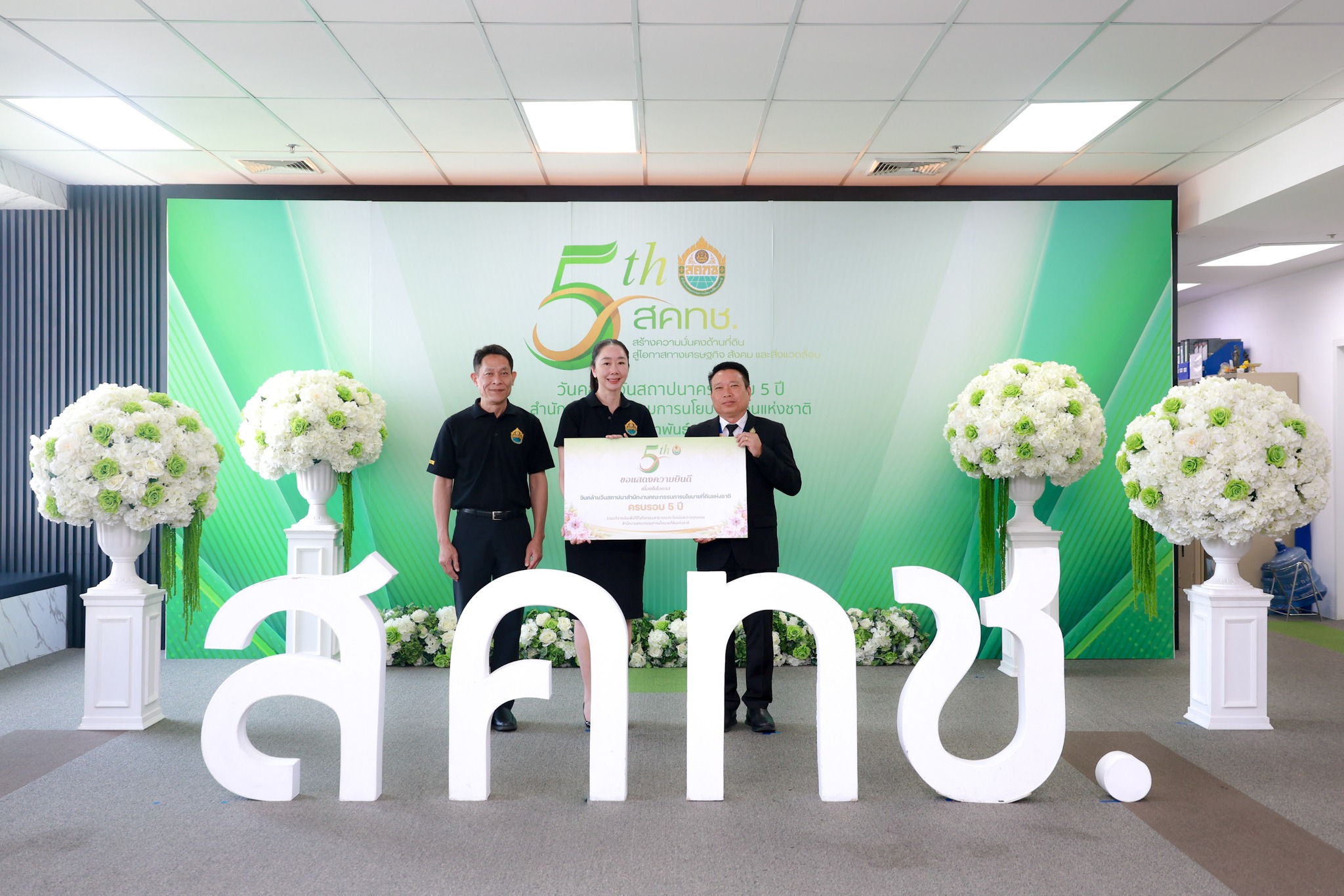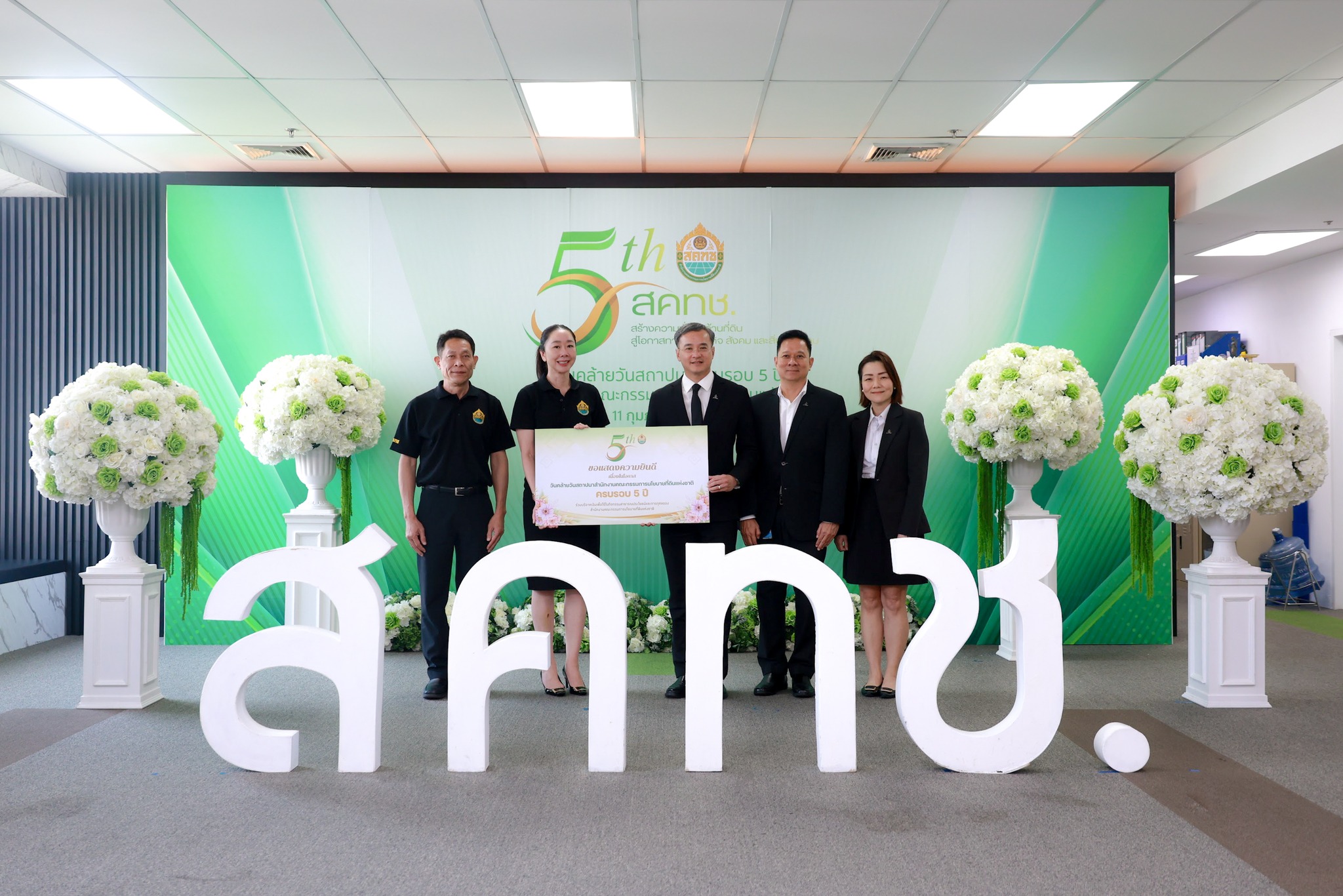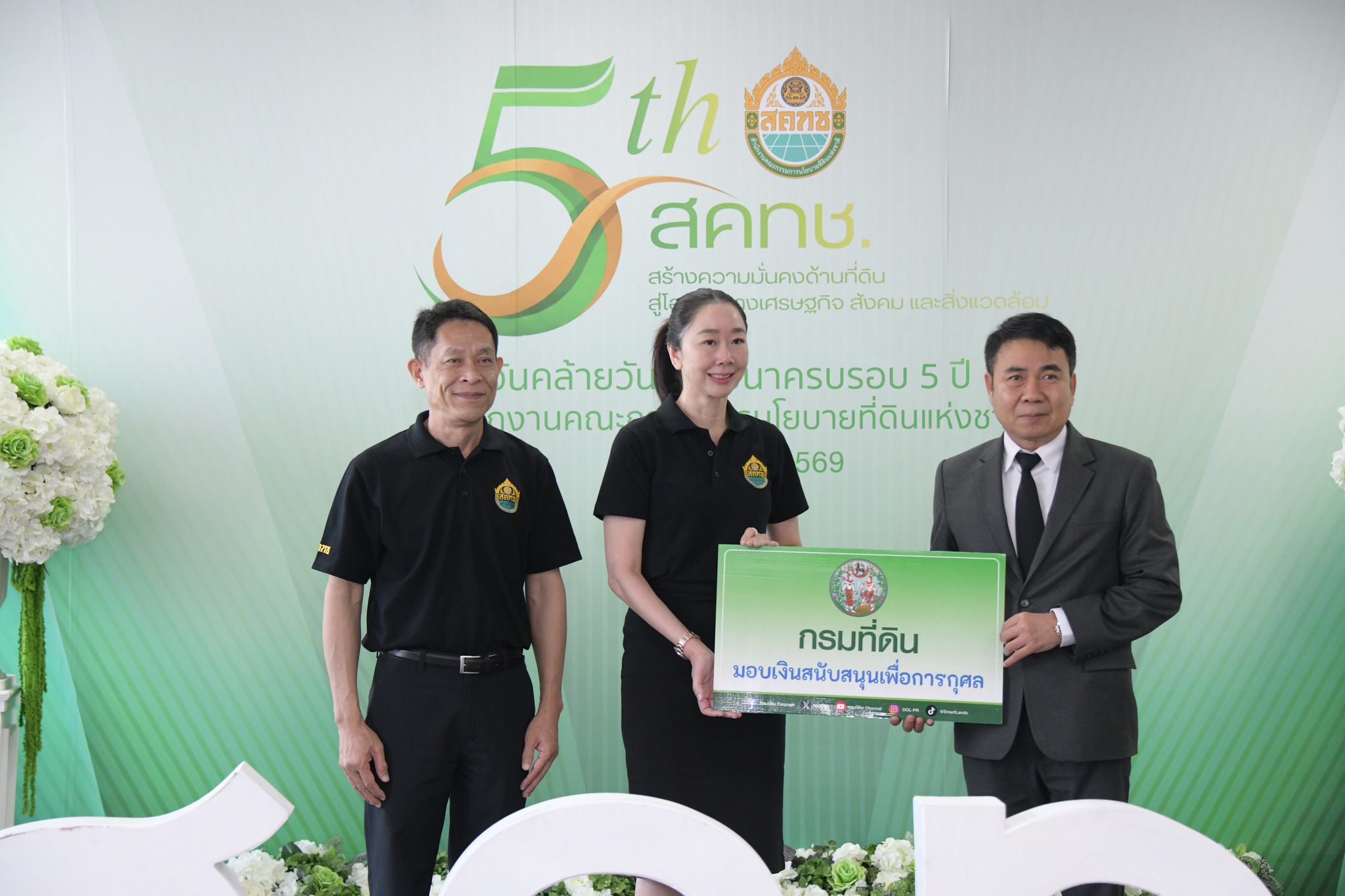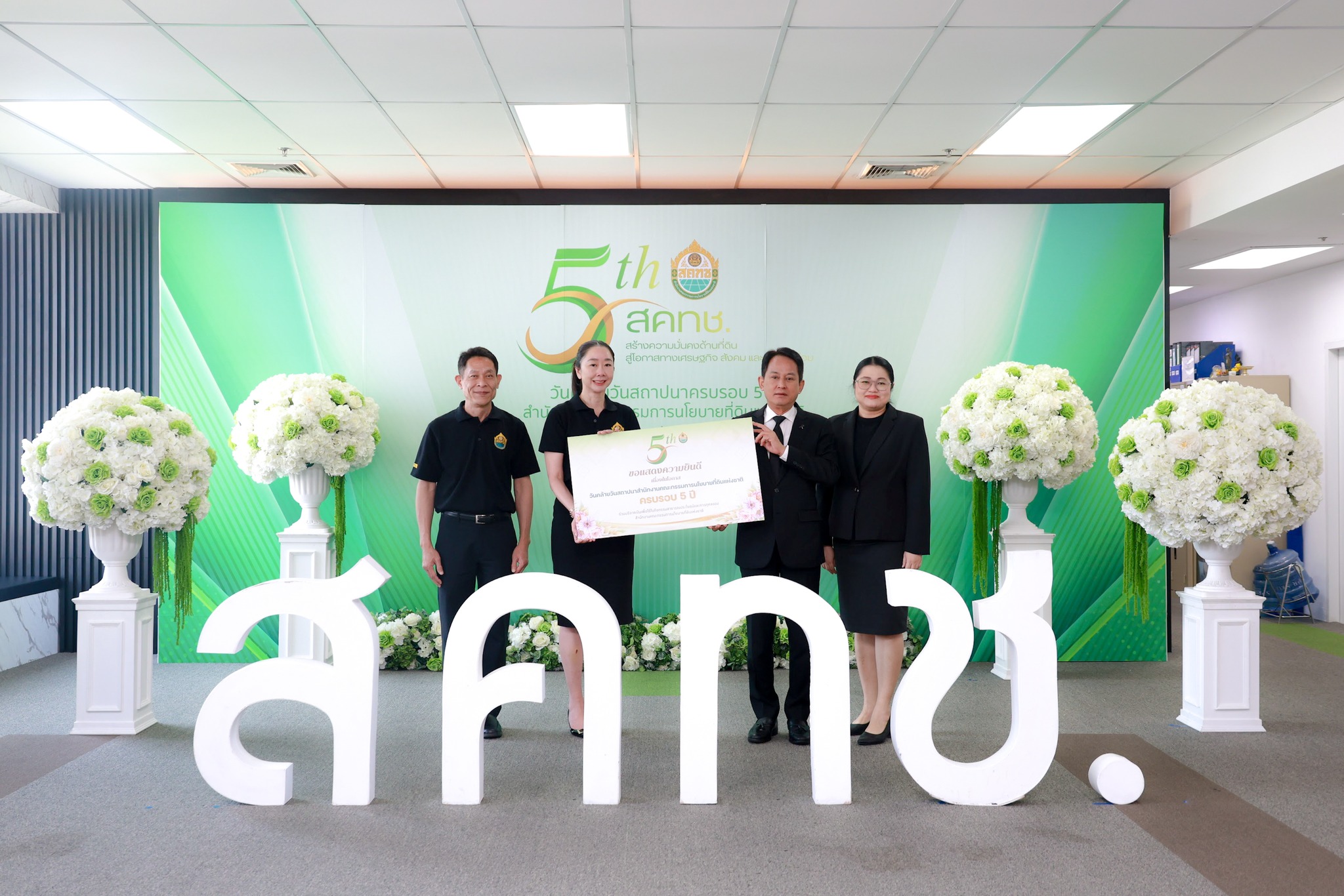 วันนี้ (11 กุมภาพันธ์ 2569) เวลา 10.00 น. ณ บริเวณโถง ชั้น 20 สำนักงานคณะกรรมการนโยบายที่ดินแห่งชาติ ดร.ชญานันท์ ภักดีจิตติ์ ผู้อำนวยการสำนักงานคณะกรรมการนโยบายที่ดิน แห่งชาติ (ผอ.สคทช.) พร้อมด้วย นายสกุลยุช ศรุตานนท์ ผู้ช่วย ผอ.สคทช. และผู้บริหาร สคทช. ให้การต้อนรับ ผู้บริหารระดับสูงและผู้แทนจากหน่วยงานภาครัฐ รัฐวิสาหกิจ องค์การมหาชน และภาคเอกชน จำนวนกว่า 50 หน่วยงาน ในโอกาสเข้าร่วมแสดงความยินดีและร่วมแสดงพลังความร่วมมือ เนื่องในโอกาสวันคล้ายวันสถาปนาครบรอบ 5 ปี สำนักงานคณะกรรมการนโยบายที่ดินแห่งชาติ อาทิ กรมทรัพยากรน้ำ กรมที่ดิน การยางแห่งประเทศไทย กรมทรัพยากรทางทะเลและชายฝั่ง สำนักงานคณะกรรมการคุ้มครองข้อมูลส่วนบุคคล กรมพัฒนาสังคมและสวัสดิการ กรมส่งเสริมการปกครองท้องถิ่น สำนักงานปลัดกระทรวงดิจิทัลเพื่อเศรษฐกิจและสังคม การประปาส่วนภูมิภาค กรมพัฒนาที่ดิน กรมทางหลวง สำนักงานพัฒนาวิทยาศาสตร์และเทคโนโลยีแห่งชาติ สำนักงานปลัดสำนักนายกรัฐมนตรี องค์การอุตสาหกรรมป่าไม้ กรมธนารักษ์ สำนักงานคณะกรรมการป้องกันและปราบปรามการทุจริตในภาครัฐ กรมแผนที่ทหาร การประปานครหลวง บริษัท ปตท.สำรวจและผลิตปิโตรเลียม จำกัด (มหาชน) สถาบันบริหารจัดการธนาคารที่ดิน การไฟฟ้าฝ่ายผลิตแห่งประเทศไทย ธนาคารกรุงไทย จำกัด (มหาชน) กรมโยธาธิการและผังเมือง กรมวิชาการเกษตร ศูนย์อำนวยการรักษาผลประโยชน์ของชาติทางทะเล องค์การสวนสัตว์แห่งประเทศไทย ในพระบรมราชูปถัมภ์ สำนักงานนโยบายและแผนทรัพยากรธรรมชาติและสิ่งแวดล้อม กรมชลประทาน กรมการเปลี่ยนแปลงสภาพภูมิอากาศและสิ่งแวดล้อม การเคหะแห่งชาติ สำนักงานเศรษฐกิจการเกษตร บริษัทเอสซีจี แพคเกจจิ้ง จำกัด (มหาชน) สำนักงานปลัดกระทรวงมหาดไทย องค์การบริหารจัดการก๊าซเรือนกระจก (องค์การมหาชน) สำนักงานการปฏิรูปที่ดินเพื่อเกษตรกรรม สำนักงานปลัดกระทรวงสาธารณสุข สำนักงานส่งเสริมวิสาหกิจขนาดกลางและขนาดย่อม กรมป่าไม้ บริษัท ปตท. จำกัด (มหาชน) กรมควบคุมมลพิษ สำนักงานคณะกรรมการป้องกันและปราบปรามการทุจริตแห่งชาติ กระทรวงยุติธรรม กรมทรัพยากรน้ำบาดาล กรมทรัพยากรธรณี กรมสรรพากร กรมการข้าว กรมอุทยานแห่งชาติ สัตว์ป่า และพันธุ์พืช ตลอดจนหน่วยงานที่เกี่ยวข้องอื่น ๆ