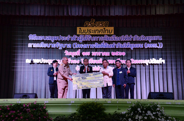 ทั้งนี้ คณะกรรมการนโยบายที่ดินแห่งชาติ (คทช.) ร่วมกับจังหวัดแม่ฮ่องสอน ดำเนินการให้ประชาชนที่มีสิทธิในการถือครองที่ดินของรัฐเพื่อใช้ในการทำกินได้อย่างถูกต้องตามกฎหมาย โดยปัจจุบันได้รับหนังสืออนุญาตแล้วจำนวน 1 พื้นที่ คือ ป่าแม่ปายฝั่งซ้าย เนื้อที่ 4,099 ไร่ 3 งาน 20 ตารางวา จัดสรรที่ดินทำกินให้ประชาชนจำนวน 1,274 ราย โดยในโอกาสนี้ นายกรัฐมนตรีได้เป็นประธานสักขีพยานในการมอบสมุดประจำตัวผู้ได้รับการคัดเลือกให้ทำกินในชุมชนให้แก่ผู้แทนประชาชนจำนวน 8 ราย 4 ตำบล 11 หมู่บ้าน เข้ารับมอบสมุดประจำตัวผู้ได้รับการคัดเลือกให้ทำกินในชุมชน ตามโครงการจัดที่ดินทำกินให้ชุมชน เป็นโครงการแรกและเป็นพื้นที่นำร่องที่ดำเนินการเสร็จ ซึ่งจะช่วยแก้ไขปัญหาที่ดินทำกินและปัญหาความยากจนของประชาชน ตามแนวทางของ คทช. ที่สอดคล้องกับนโยบายของรัฐบาลในการลดความเหลื่อมล้ำและแก้ไขปัญหาการไร้ที่ดินทำกินของเกษตรกร เพื่อให้ประชาชนมีคุณภาพชีวิตที่ดีขึ้นและทัดเทียมกับจังหวัดอื่น ๆ อีกด้วย
