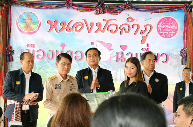 เมื่อวันพฤหัสบดีที่ 22 มีนาคม 2561 เวลา 10.00 น. ณ กลุ่มวิสาหกิจชุมชนปลูกผักอินทรีย์ โพธิ์ศรีสำราญ ตำบลหัวนา อำเภอเมือง จังหวัดหนองบัวลำภู พลเอก ประยุทธ์ จันทร์โอชา นายกรัฐมนตรี เป็นประธานสักขีพยานมอบสมุดประจำตัวผู้ได้รับการคัดเลือกให้ทำกินในชุมชนโครงการจัดที่ดินทำกินให้ชุมชน (คทช.) ตามนโยบายของรัฐบาลให้แก่ผู้แทนประชาชน โดยมี พลอากาศเอก ประจิน จั่นตอง รองนายกรัฐมนตรี พลเอก ฉัตรชัย สาริกัลยะ รองนายกรัฐมนตรี พลเอก อนุพงษ์ เผ่าจินดา รัฐมนตรีว่าการกระทรวงมหาดไทย นายกฤษฎา บุญราช รัฐมนตรีว่าการกระทรวงเกษตรและสหกรณ์ นายศิริ จิระพงษ์พันธ์ รัฐมนตรีว่าการกระทรวงพลังงาน นายสนธิรัตน์ สนธิจิรวงศ์ รัฐมนตรีว่าการกระทรวงพาณิชย์ นายปิยะสกล สกลสัตยาทร รัฐมนตรีว่าการกระทรวงสาธารณสุข และนายกอบศักดิ์ ภูตระกูล รัฐมนตรีประจำสำนักนายกรัฐมนตรี ร่วมพิธี โดยมีนายธนากร อึ้งจิตรไพศาล ผู้ว่าราชการจังหวัดหนองบัวลำภู เป็นผู้กล่าวรายงาน และเป็นผู้มอบสมุดประจำตัวให้แก่ตัวแทนชุมชนจำนวน 10 ราย